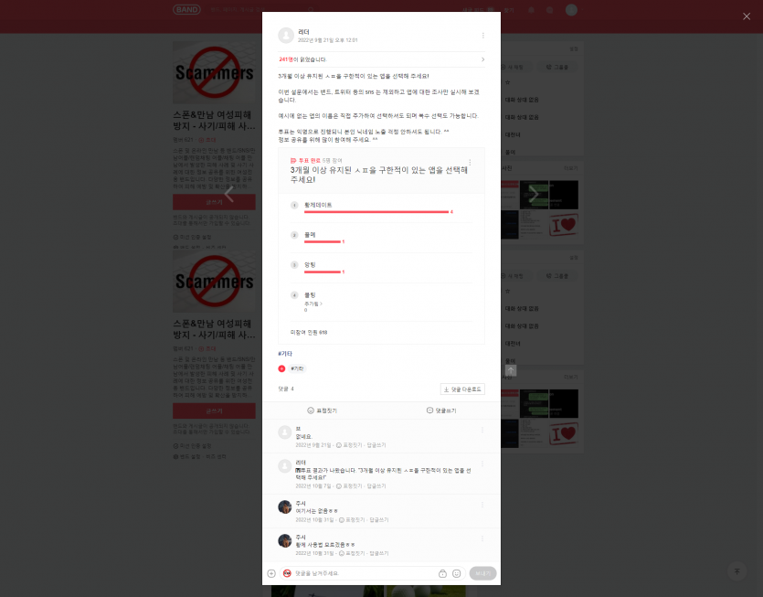 〈밴드공지〉 3개월 이상 유지된 ㅅㅍ을 구한적이 있는 앱을 선택해 주세요!