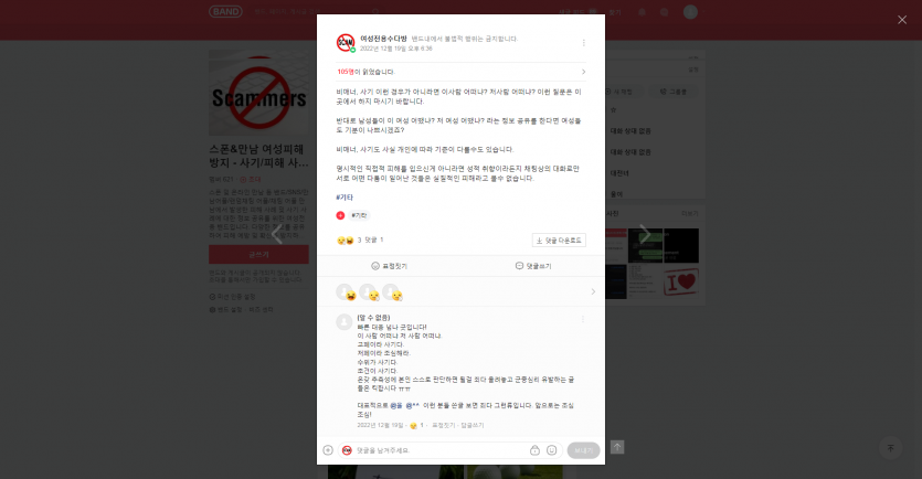 반대로 남성들이 이 여성 어땠냐? 저 여성 어땠냐? 라는 정보 공유를 한다면 여성들도 기분이 나쁘시겠죠?
