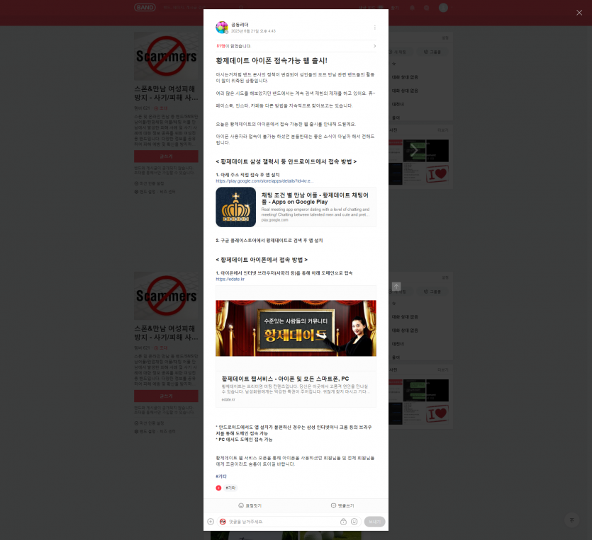 〈밴드공지〉 황제데이트 아이폰 접속가능 웹 출시!